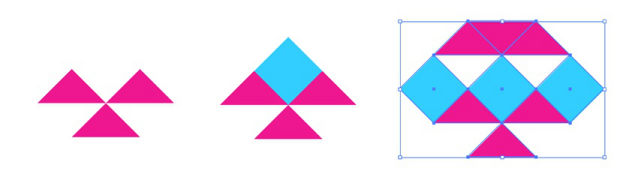 根據(jù)需要組合元素。如果你正在使用網(wǎng)格,你將能夠輕松地對齊正方形和三角形。如果不使用“對齊”面板以進行對稱設計。