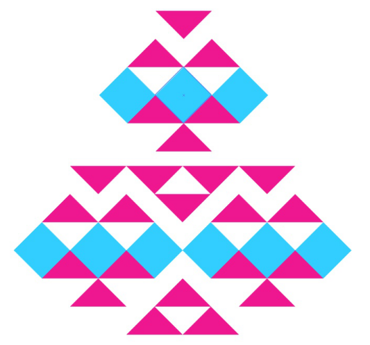 讓我們研究一下在紡織品和被子模式中使用的常見設計。將三個三角形排列在一起,使其角落接觸在中間添加第四個三角形以在頂部創(chuàng)建平坦邊緣。再添加四個三角形,交替方向,從而在中心形成一個直角。在另一側(cè)添加兩個倒置的三角形以擴展該角度。