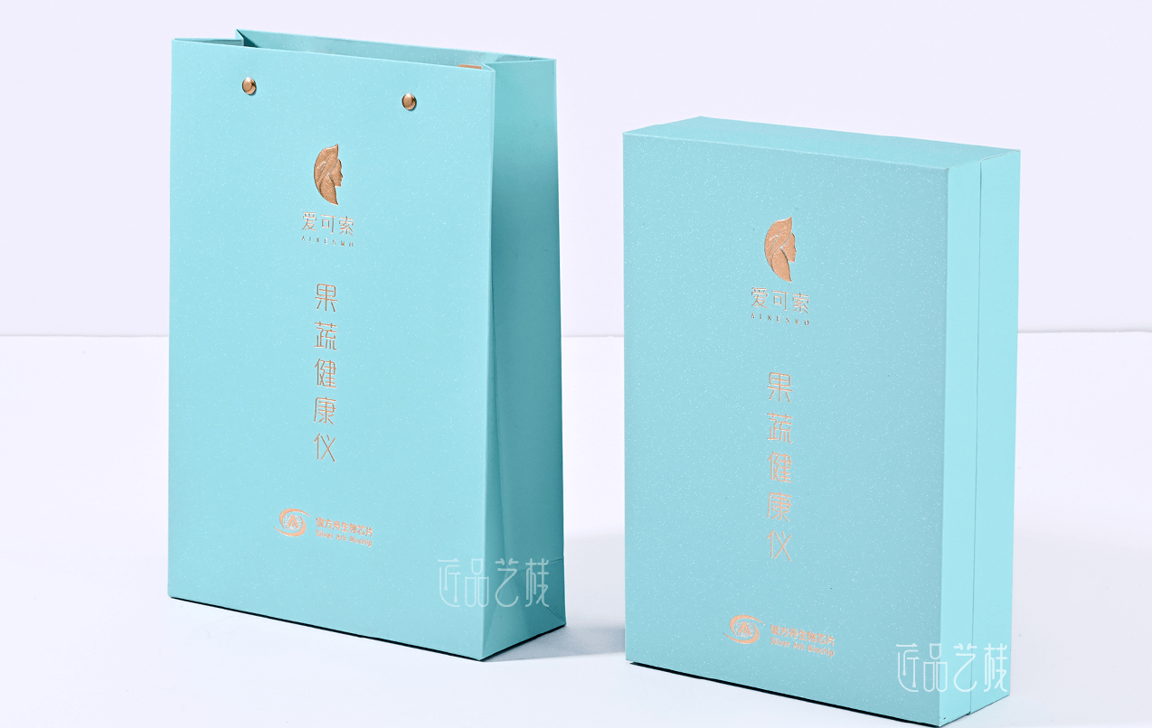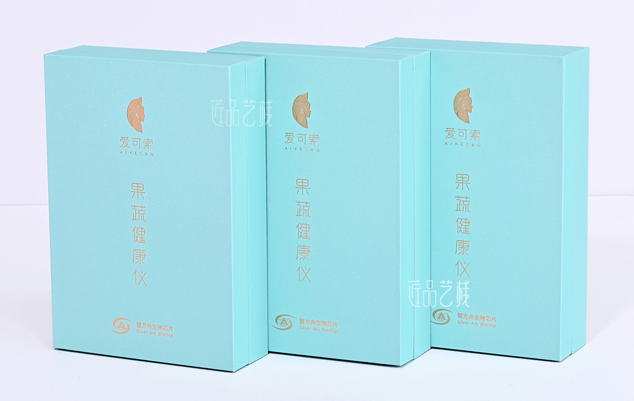 愛(ài)可索手持式家用果蔬農(nóng)殘檢測(cè)儀品牌,是銀方舟生物芯片自主創(chuàng)新的國(guó)內(nèi)首臺(tái)家用果蔬農(nóng)殘檢測(cè)儀。在該產(chǎn)品包裝盒定制中,佳潤(rùn)隆包裝&匠品藝棧,采用簡(jiǎn)約蒂夫藍(lán)為底色,并在印刷制作中搭配表面磨砂和浮雕燙金工藝,使其既不失生物科技的時(shí)尚感,同時(shí)又以更親潔、綠色的品質(zhì)體驗(yàn)呈現(xiàn)于市場(chǎng),受到客戶(hù)企業(yè)和銷(xiāo)售市場(chǎng)的一致高度好評(píng)。