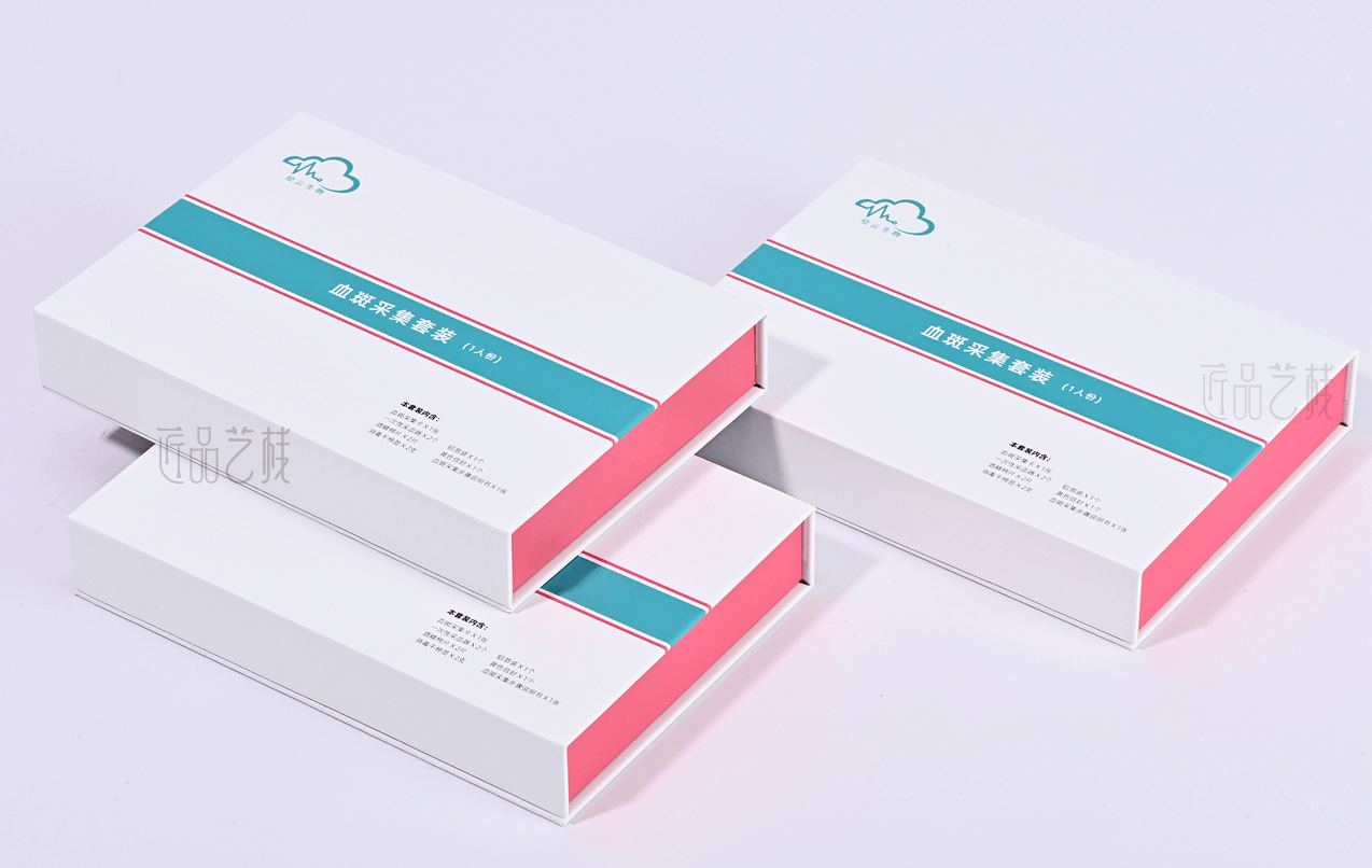佳潤(rùn)隆印刷&匠品藝棧,在與擁有一系列具有自主知識(shí)產(chǎn)權(quán)的體外診斷試劑盒、智能輔助軟件和健康飲品,并提供多項(xiàng)科研和醫(yī)學(xué)檢驗(yàn)服務(wù)的繪云生物科技企業(yè)合作中,采用精致的吸塑合理設(shè)計(jì)其產(chǎn)品內(nèi)呈現(xiàn)方式,以簡(jiǎn)約的科技藍(lán)和產(chǎn)品血斑粉紅色為搭配設(shè)計(jì),運(yùn)用特種紙張和硬卡灰板搭配精裝制作而成,為該產(chǎn)品在大健康試劑檢測(cè)領(lǐng)域脫穎而出,提升產(chǎn)品給消費(fèi)者的良好體驗(yàn)和銷(xiāo)售價(jià)值。