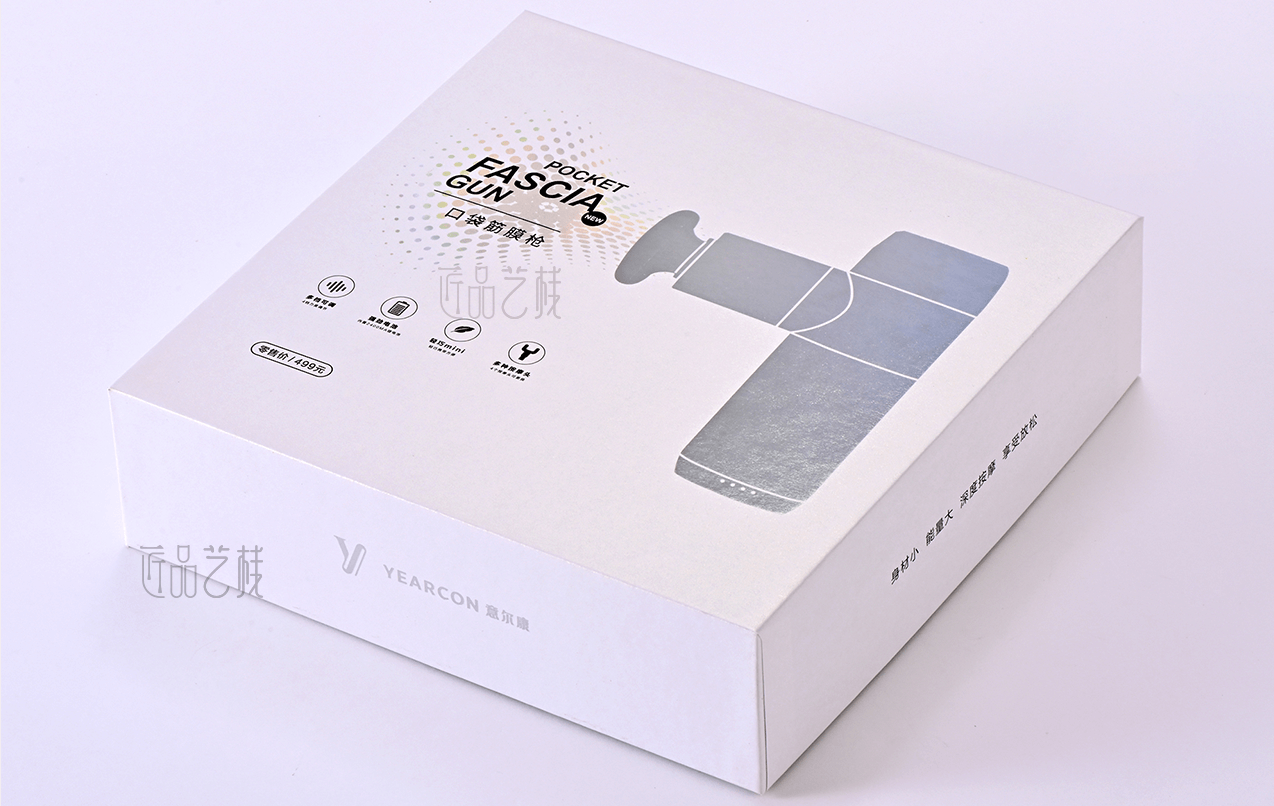 意爾康企業(yè)集團(tuán),全國3000多家專賣店連鎖品牌。在針對其口袋按摩槍產(chǎn)品包裝盒制作時,佳潤隆包裝印刷&匠品藝棧,根據(jù)相應(yīng)設(shè)計(jì)方案,配置a級珠光紙和uv機(jī)印刷,同時采用鐳射燙金工藝和精制天地盒,使整體產(chǎn)品包裝盒呈現(xiàn)簡而不凡的氣質(zhì),在市場中脫穎而出。