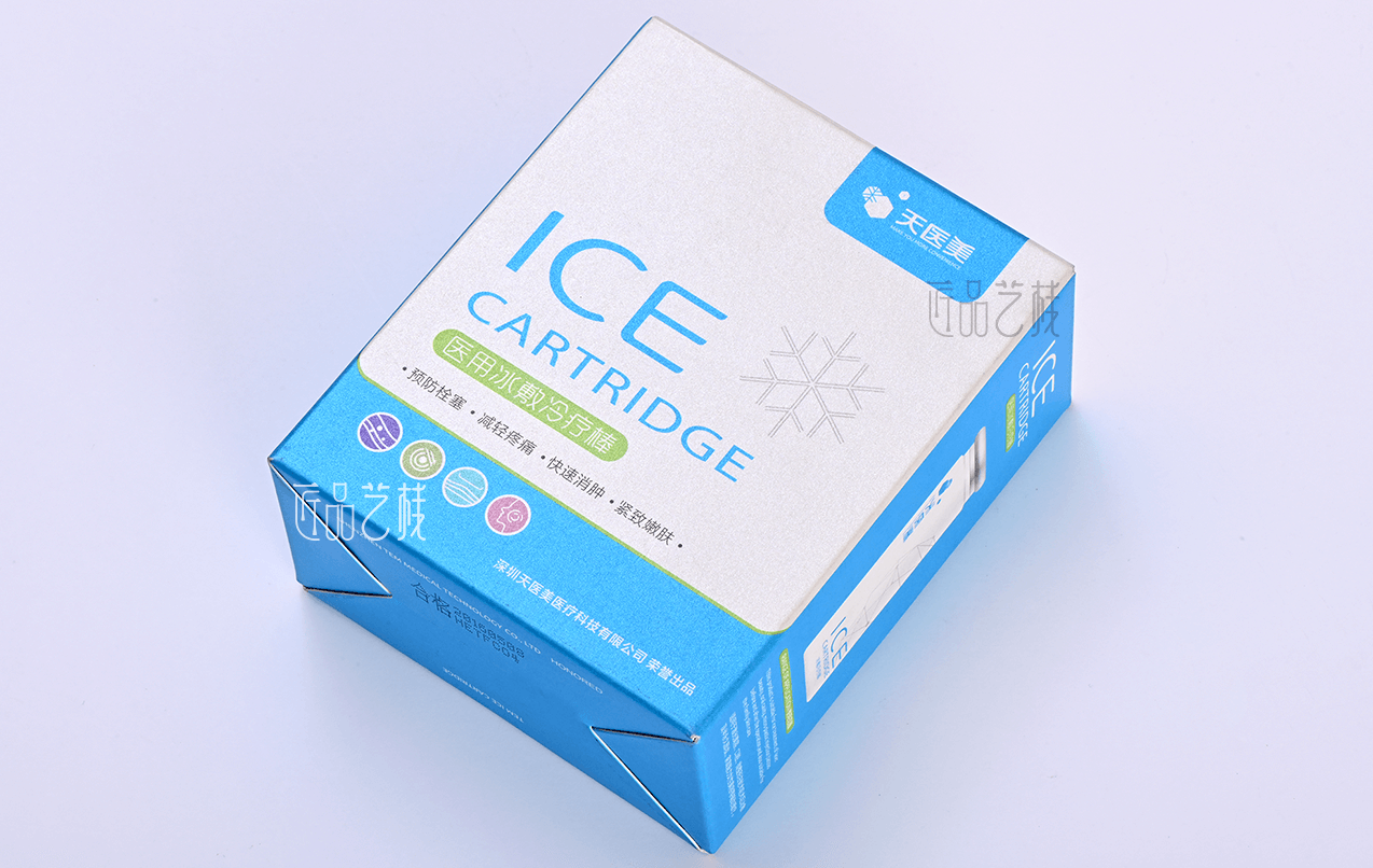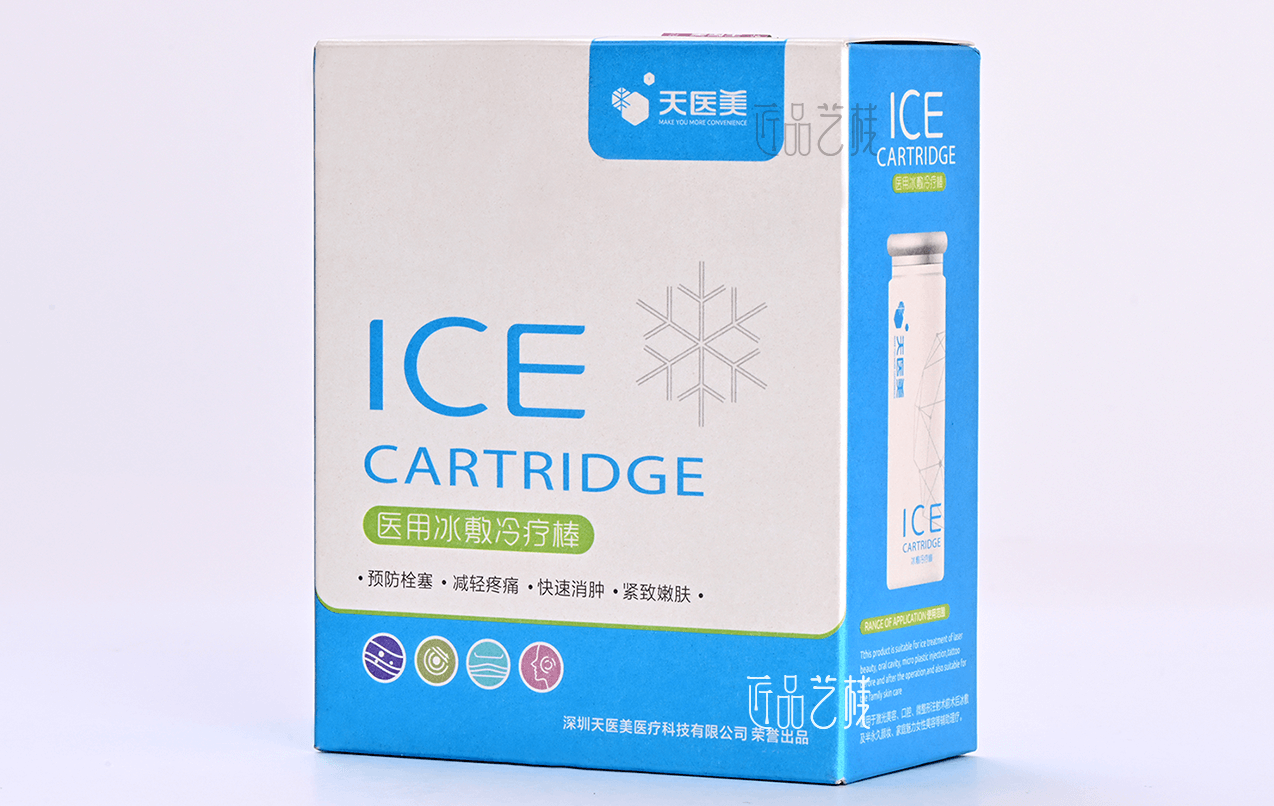 深圳天醫(yī)美醫(yī)療科技有限公司,主營(yíng)醫(yī)療器械、醫(yī)療設(shè)備等技術(shù)研發(fā)與銷售,佳潤(rùn)隆包裝印刷&匠品藝棧在與其天醫(yī)美品牌醫(yī)用冰敷冷療棒產(chǎn)品包裝盒印刷定制時(shí),直接采用品牌冰面珠光紙,UV油墨和UV印刷烘干方式,使其產(chǎn)品包裝盒更貼切于產(chǎn)品冰敷冷療的氣質(zhì),以及給人們帶來健康和美膚的寓意。