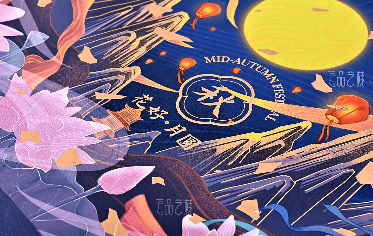 花好月圓文創(chuàng)禮盒,是為中秋佳節(jié)原創(chuàng)的一款創(chuàng)意定制禮盒,采用國潮風格的原創(chuàng)插畫設計,創(chuàng)新的禮盒形結(jié)構(gòu),運用特種紙張印刷,以及燙印、逆向UV等精制工藝,使花好月圓禮盒成為文創(chuàng)創(chuàng)意領域又一支獨秀。